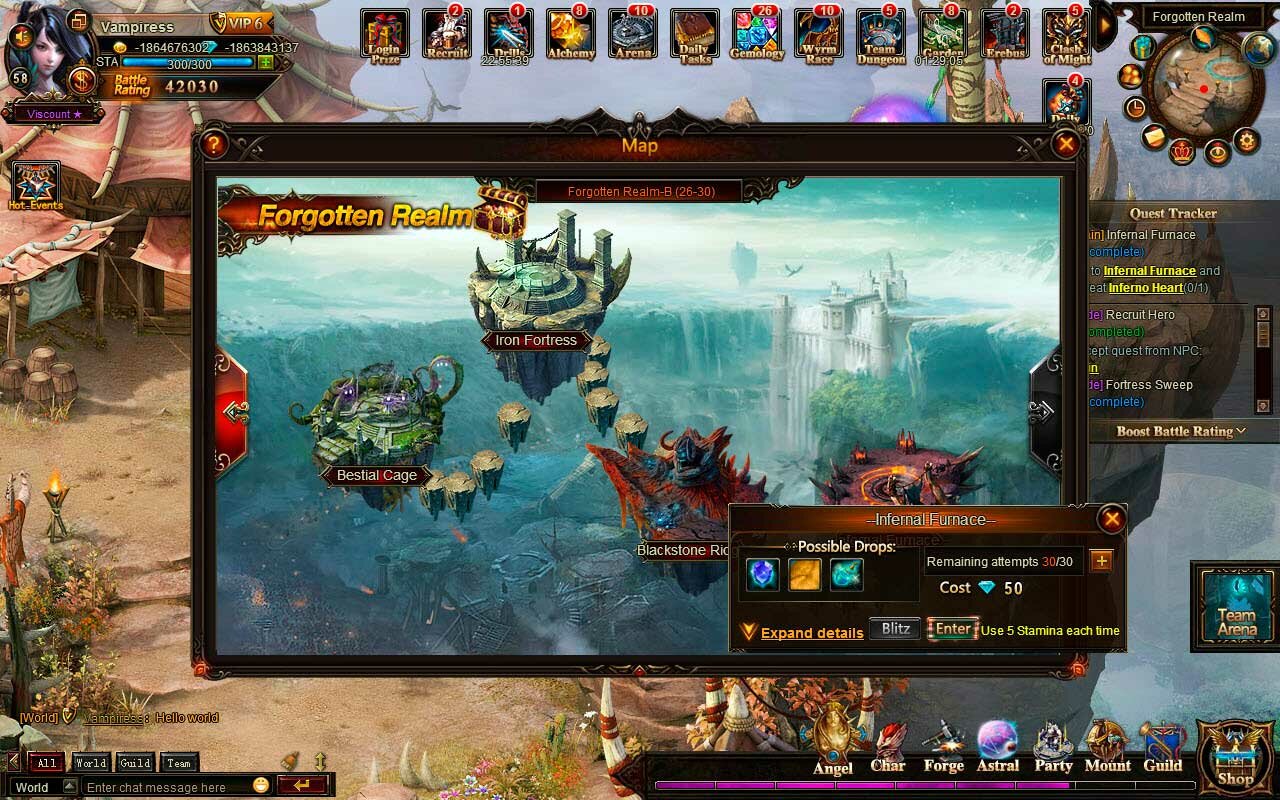 реалтаймовое перемещение по глобальной карте. На ней пользователь управляет одним героем, может нападать на других геймеров или монстров, общаться с компьютерными персонажами для получения и прохождения квестов, а также переходить из одной локации в другую;