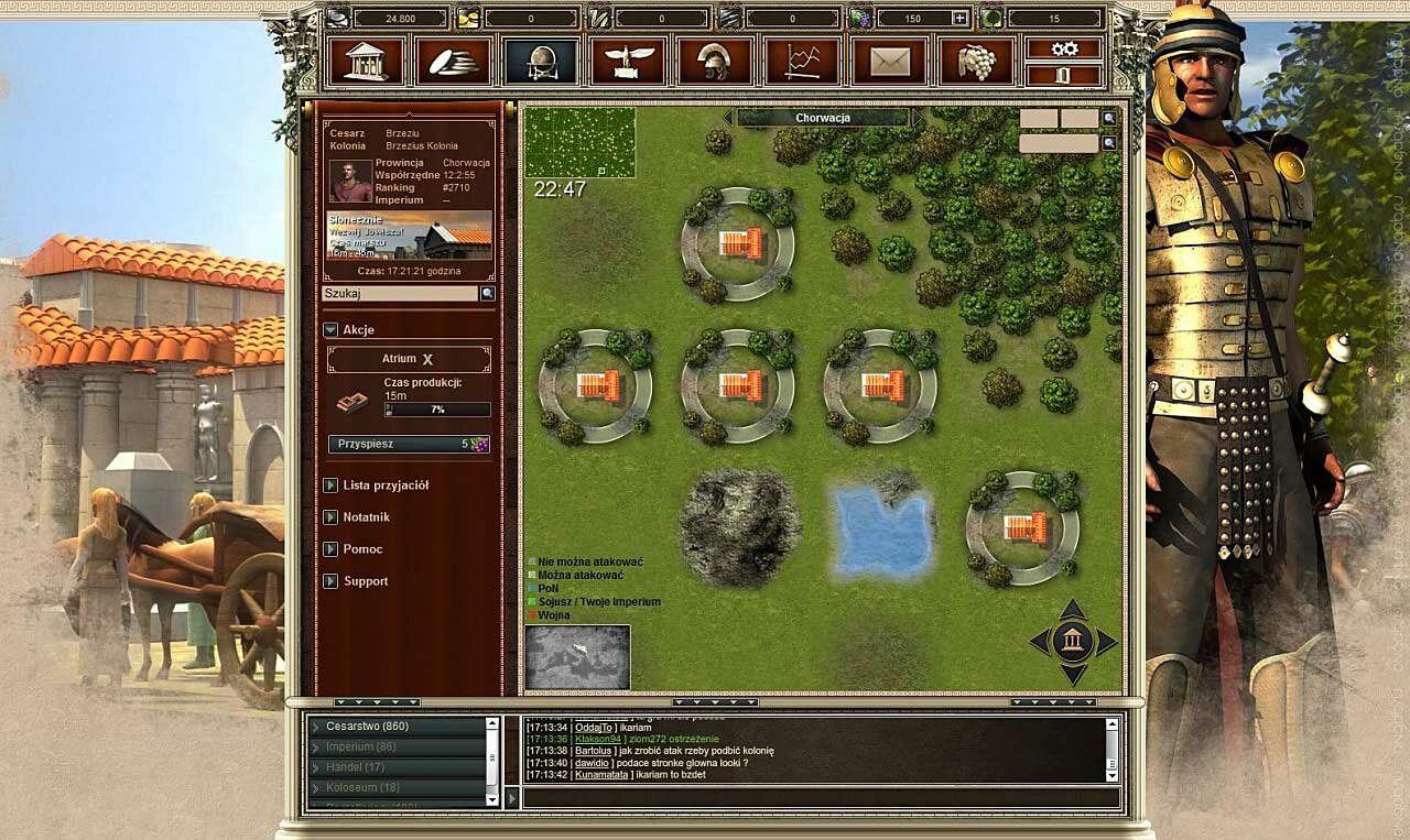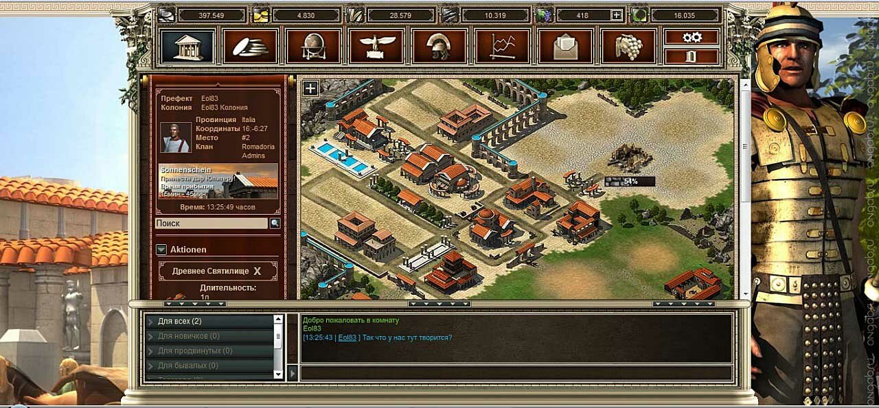 В игре Ромадория необходимо создать свою колонию и стать ее полновластным хозяином. Людские ресурсы, полезные ископаемые, военная мощь и продуктивные сооружения – все это дается вам в помощь для достижения заветной цели. Сотрясите мощью своей армии близлежащих соседей, расширяйте границы своего мини-государства, вступайте в дружественные кланы, а затем, коварно предавая ее членов, взойдите на главный трон Римской Империи!
