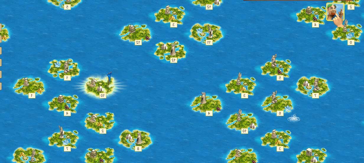 Вообще система подсказок в игре Икариам выполнена очень толково и не даст запутаться начинающему стратегу. Режим острова покажет нам панорамную карту всего острова, и вы сразу же почувствуете себя не одиноким. Недалеко от своего поселения можно увидеть деревни варваров управляемые компьютером и города других онлайн игроков. Когда вы перейдете на карату мира Ikariam, сразу становится понятным что играть в эту браузерную стратегию придется долго и основательно. Огромный и еще не исследованный мир Икариам, как бы намекает что впереди вас ждет много военных походов, поиск единомышленников и торговых союзников.