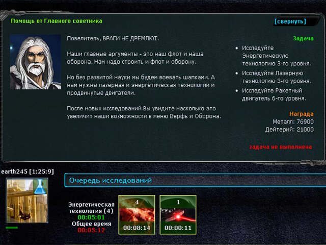 В начале игры Повелители вселенных, выполняйте задания советника, он вас под натаскает и вы быстро освоитесь в интерфейсе игры, также за задания советника вы будете получать необходимые ресурсы и местную денежную валюту «Галакты». Ресурсы в игре представлены в виде: Металла, Кристаллов, Дейтерия и Энергии. Для их хранения необходимо строить хранилища и следить чтобы оно не переполнилось. Для энергии, нужно строить электростанции. Внимательно слушайте советника и он вам поможет выстроить свои первые постройки. Виртуальная жизнь в игре King Stars продолжается даже тогда, когда вы покидаете игру, поэтому незабываем уделять время обороне. А вообще в этой онлайн игре дается достаточно времени, чтобы спокойно и неторопливо развиться.