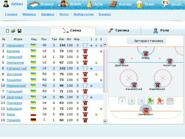 На первых порах, осваивая игру Короли льда постарайтесь выбрать свою тактику, участвуйте в дружеских матчах, на которых ваша команда будет получать бесценный опыт, который будет улучшать характеристики ваших игроков. Кроме опыта ваших хоккеистов, вы будете также получать опыт почета, чем он выше, тем с большей охотой к вам будут приходить игроки из других команд. После того как вы освоитесь в игре Короли льда, и начнете выигрывать дружеские матчи, у вас появится возможность подать заявку на участие в регулярных турнирах, в которых вы будете получать еще больше командного опыта и уровня престижа. Выбрав правильную стратегию продвижения своей хоккейной команды, вы очень быстро добьетесь успеха и славы.